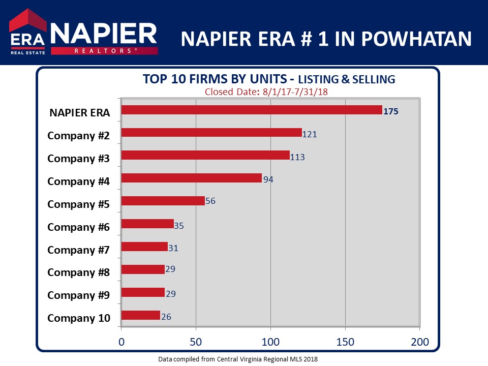 Who's the #1 real estate firm serving Powhatan over the past year? Napier ERA, that's who! Congratulations to our agents, our staff, and to all those new homeowners who have bought or sold with Napier!